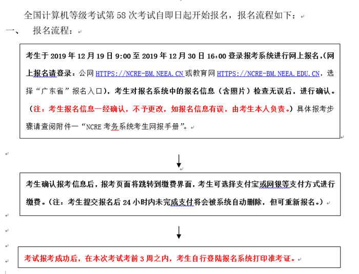 6、请考生保存好准考证,考试通过后,凭准考证本考点领取等级考试合格证书(一般在2020年9月,具体时间请关注本考点官网公告)。考试成绩约在考试结束2个月后公布,考生可登录中国教育考试网(http://chaxun.neea.edu.cn/)或全国计算机等级考试网站(http://ncre.neea.edu.cn/)查询。
