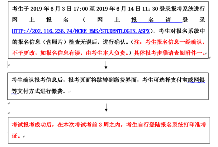 6、请考生保存好准考证,考试通过后,凭准考证本考点领取等级考试合格证书(一般在2020年2月)。考试成绩一般在2019年11月左右登录NCRE网站(www.ncre.cn)查询。
