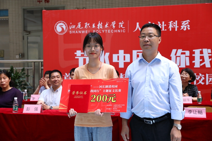 3月30日下午,在我校A区实训楼大厅举行颁奖仪式。学校党委委员、副校长傅凤龙,汕尾市水务局副局长李让畅、汕尾市水务局科长杨黎明、罗文静以及我校相关部门领导出席了本次活动。