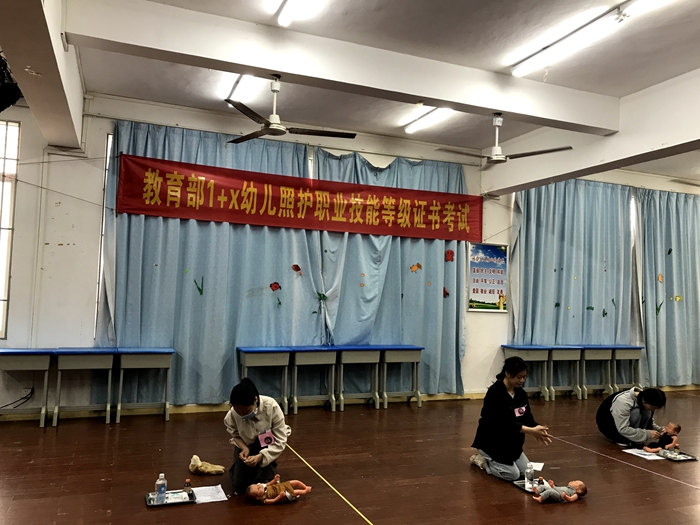 为贯彻落实《国家职业教育改革实施方案》,扎实推进“学历证书+若干职业技能等级证书”制度试点工作,3月27-28日,我校艺术与设计系学前教育专业开展了教育部“1+X幼儿照护职业技能等级证书(中级)”考试工作。