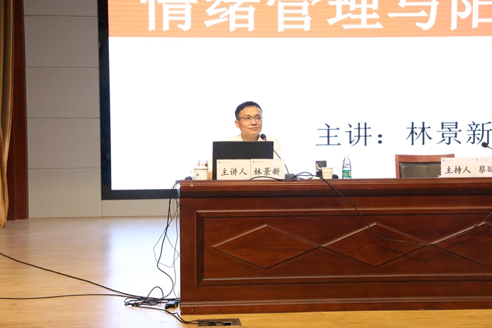 8月24日下午,我校“红场大讲堂”学术讲座第十二讲在电教楼学术报告厅隆重开讲,本次特邀中山大学公共传播研究所研究员林景新博士作题为《情绪管理与阳光心态》的辅导报告。学校党委书记林来平为林景新博士颁发“红场大讲堂”证书,校党委副书记、校长蔡昭权教授主持讲座并作总结讲话。学校领导班子成员和全体教职工参加讲座。