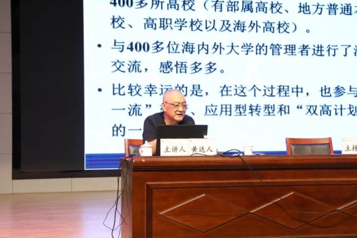 如何建设一高水平高职学校?黄达人校长结合自己在“双高计划”建设指导工作的经历,指出大力推进专业群建设,是中国特色高水平高职学校建设的主要内容和关键所在,是高职学校深化改革的重要抓手。他分别从三个方面展开论述:一是以人才培养为中心。对于高职学校而言,在推进专业群建设的过程中,要把人才培养放在首位,要以学生为中心,关注学生的成长度、获得感和满意度。要尊重学生的选择,因材施教,从而达到人才培养的目的。他提出了职业教育要遵循职业标准,也指出各类教师应具有的能力,并强调每一位教师都具有育人的责任,教师应以身作则,以高尚的师德和严谨的治学态度来影响学生。二是重视平台建设,打造创新服务的高地。要把学校打造成人才培养的高地、创新服务的高地,首先要实现对特定行业或企业的技术服务,推进校企合作;其次是注重建设双师型师资队伍,提升教师能力;最终达到育人目的,培养具有创新精神和创新能力的学生。三是学校要体现组织的价值。强调大学行政文化建设的重要性,并对于学校各级行政组织提出了定位,指出行政管理干部要各司其职,增强工作主动性,既要满足岗位的基本要求,也要有所创新,推动学校整体发展。