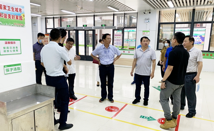 校领导一行听取了各部门负责人对学生返校准备工作的汇报,并在实地检查中详细了解了校门口学生返校接待流程、防控物资储备情况、食堂用餐分餐制度落实情况、课室和学生宿舍安排情况等各项准备工作。
