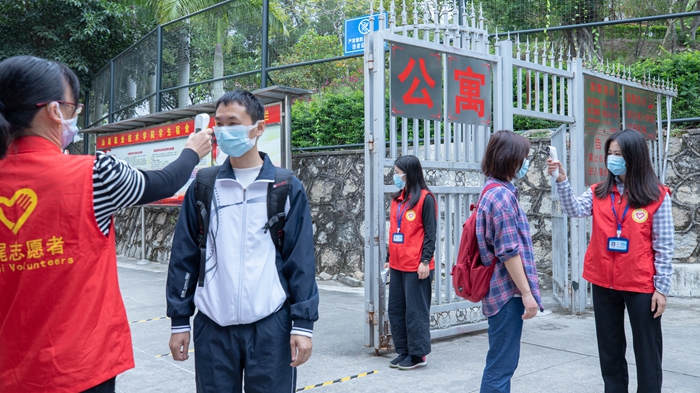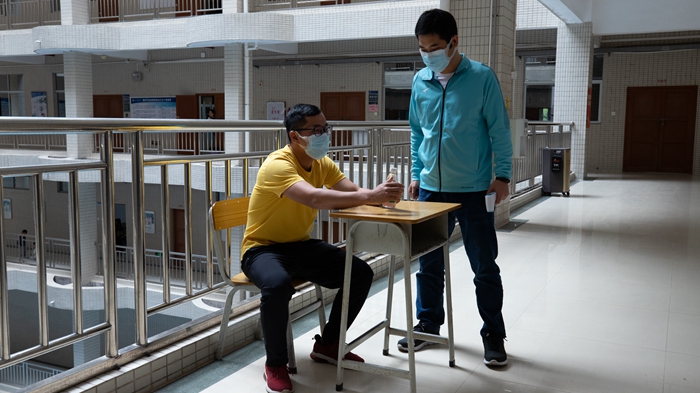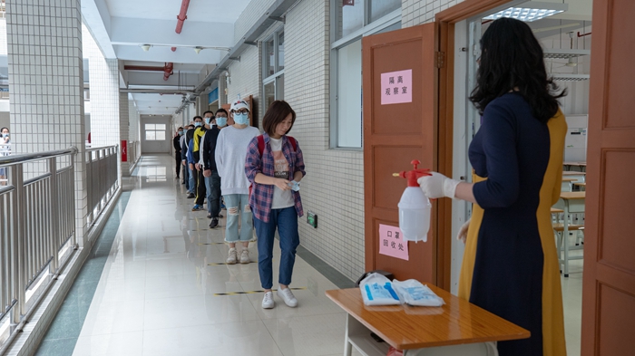模拟实战演练分别在学校大门、学生宿舍、教室上课、食堂就餐、校医室就诊、隔离医学观察区等多个场景进行,模拟出现“学生”体温异常情况的应急处置,覆盖了从初测体温异常,到送往临时医学观察区、复测体温、上报信息、心理安抚、120急救车转送、消毒通风、病例跟踪、联防联控、启动应急预案等多个环节,按照“演练即实战”的要求,完整模拟师生返校后防控疫情的真实场景。