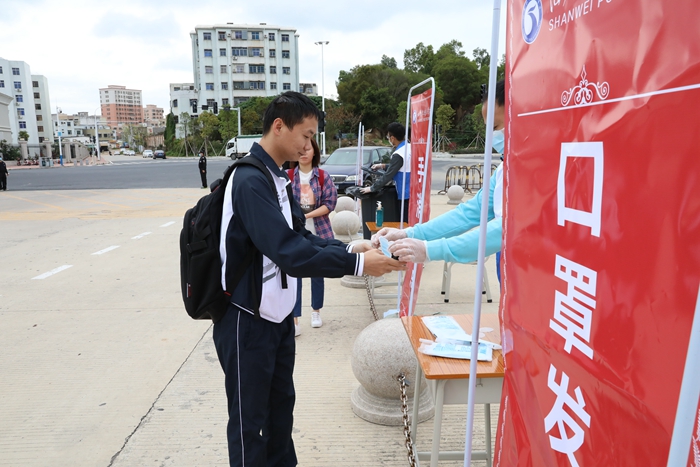 为进一步做好学生返校各项准备工作,切实提高学校学生返校疫情防控和遇突发状况的应急处置能力,根据省教育厅《关于开展全省学校学生返校疫情防控模拟演练的通知》精神,按照学校新冠肺炎疫情防控指挥部的部署安排,4月24日上午,我校举行疫情防控第二次应急处置模拟演练。校党委书记林来平同志、院长蔡昭权教授亲临现场指导演练,党委副书记、纪委书记吴方晖同志主持本次演练活动,副院长柳青、林炳壮、傅凤龙,汕尾市教育局副局长何文山,汕尾市城区香洲街道党工委书记彭少华,汕尾市疾控中心副主任彭胜捷,学校卫生健康副校长、汕尾市人民医院副院长、主任医师庄雄升,副主任医师庄汉森到场观摩指导,各单位负责人及相关人员参加此次演练活动。