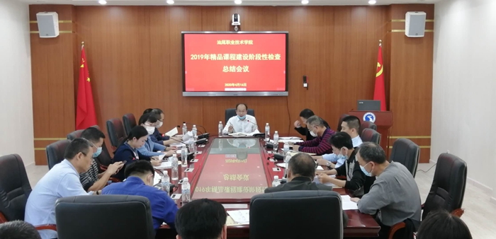 4月16日下午,我院在科学楼三楼会议室召开院级精品(在线开放)课程建设阶段性检查总结会议。会议由学院党委委员、副院长傅凤龙主持,教务处有关人员、各教学系主管教学主任、高水平专业群建设负责人及核心专业教研室主任参加了会议。