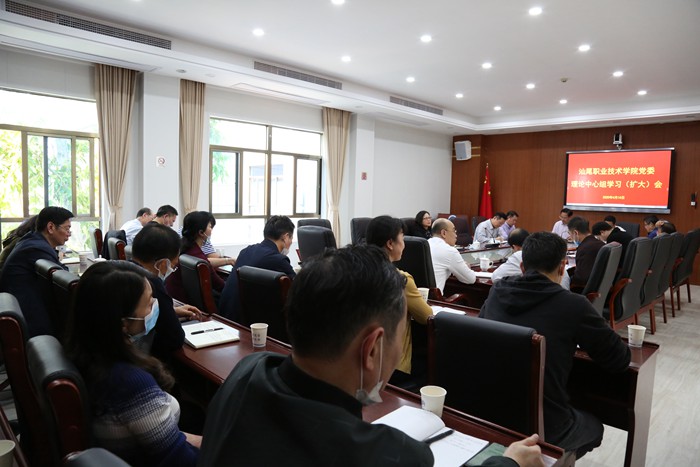 4月10日下午,我校在科学楼三楼会议室召开党委理论中心组学习(扩大)会议。校党委书记林来平同志主持会议并作讲话,党委副书记、院长蔡昭权同志领学习近平总书记在浙江考察时的重要讲话精神,学校其他领导班子成员及各单位党政负责人参加会议。