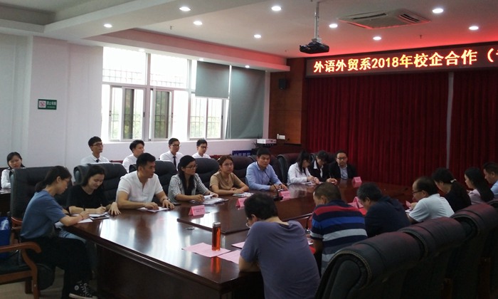 会后,五家合作企业对各自的基本情况、经营项目与规模、发展情况、企业文化、用人需求等方面向学生做了展示。随后,外语外贸系组织学生与企业进行了面对面的交流与沟通,商议好专业实训的各项对接工作安排。