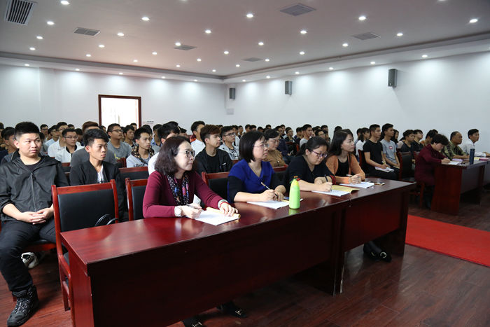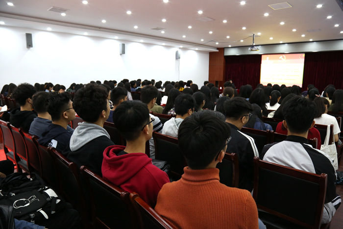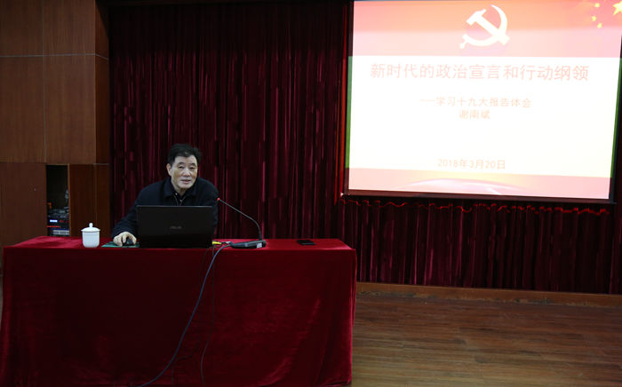 谢南斌院长以《新时代的政治宣言和行动纲领》为题,对十九大报告进行了深入解读,高度概括了十九大报告的精华内容,同时回顾了近代历史,以饱满的理论自信、情感自信介绍了我们党在领导中国革命建设中的丰功伟绩。最后还对学生进行敦敦教导,教育全体学生要好好学习,努力成为新时代中国特色社会主义的合格建设者。