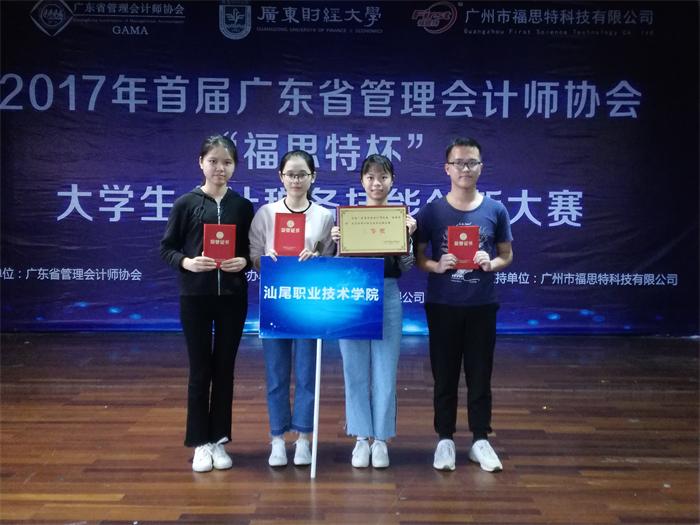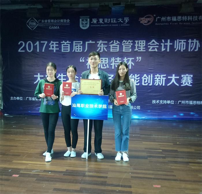2017年11月11日,由广东省管理会计师协会主办、广东财经大学与广州福思特科技有限公司承办的首届“福思特杯”大学生会计税务技能创新大赛在广州举行。经过精心筹划和准备,我院经济管理系选派两支队伍参赛。经过激烈角逐,由胡文鑫(队长)、林晓红、彭佳丹、徐晓青、罗思维同学等组成的团队获得二等奖,由林少娜(队长)、黄慧燕、林颖怡、梁剑锋、杨瑞雅同学等组成的团队获得三等奖。刘钦文、李丽英、张丽、陈胜震等老师参与指导。