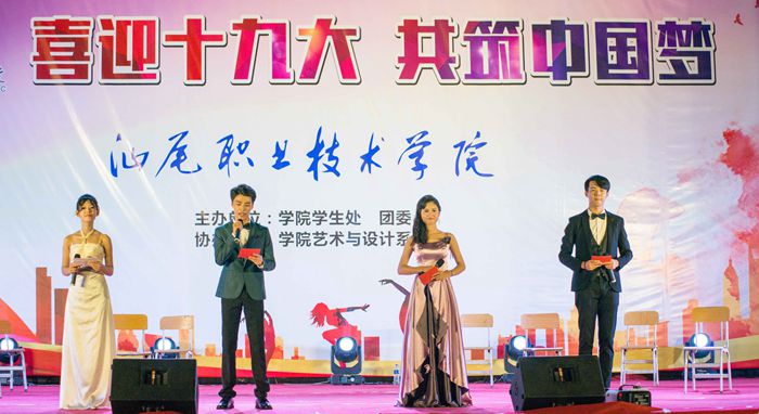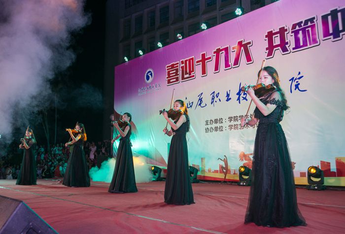 为庆祝新中国成立68周年,迎接党的十九大,积极响应汕尾市开展的创文活动,9月28日晚上,我院在陶行知广场举行“喜迎十九大 共筑中国梦”文艺晚会。学院党委副书记、纪委书记、工会主席吴方晖,副院长林炳壮,副院长傅凤龙,相关部门领导,教师代表以及2017级新生参加了晚会。