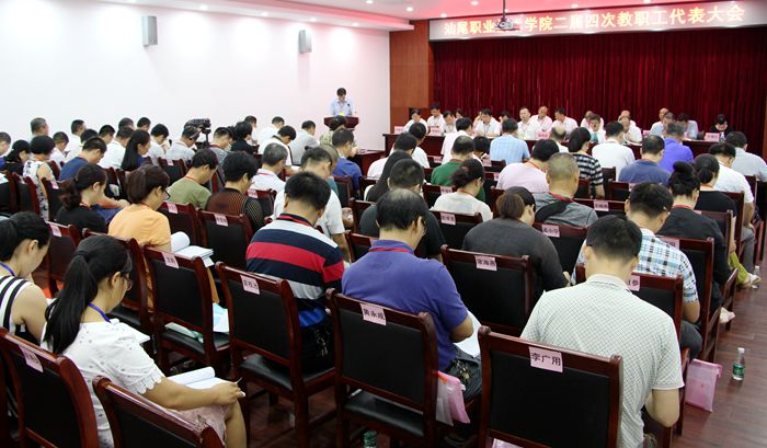 2017年6月20日,我院二届四次教职工代表大会在科学楼四楼会议室隆重召开。学院领导班子成员、全体教代会代表及列席代表近100人参加了会议。
