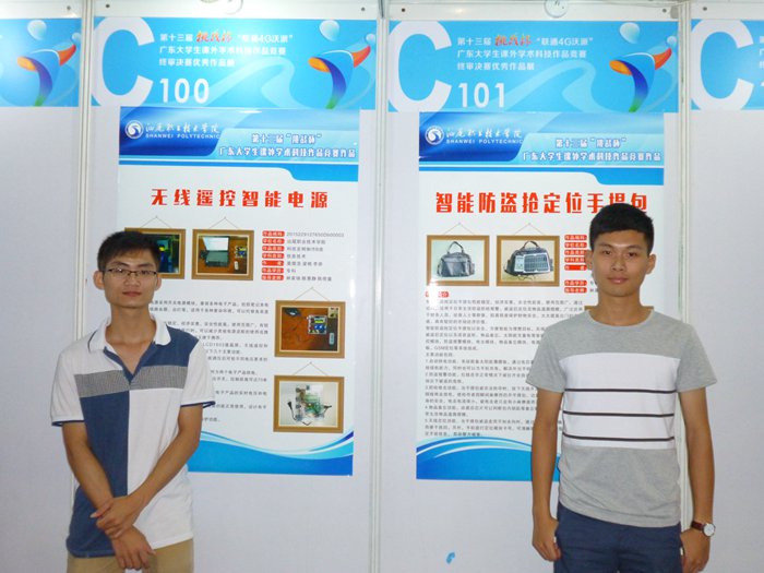在本届竞赛中我院选送的《无线遥控智能电源》(作者:莫儒浩、梁根、李南 指导教师:林家铸、陈惠静、陈倚重)获得信息技术类特等奖,另外获奖的还有:《智能防盗抢定位手提包》(作者:肖泽生朱恒余 黄新鹏 张燚兵 王焕鑫 指导老师:林家铸、陈惠静、陈倚重)获得信息技术类二等奖、《“大塘村”古村落文化探究》(作者:卢再紧,指导老师:陈力士、陈秋燕)获得哲学社会科学类三等奖。