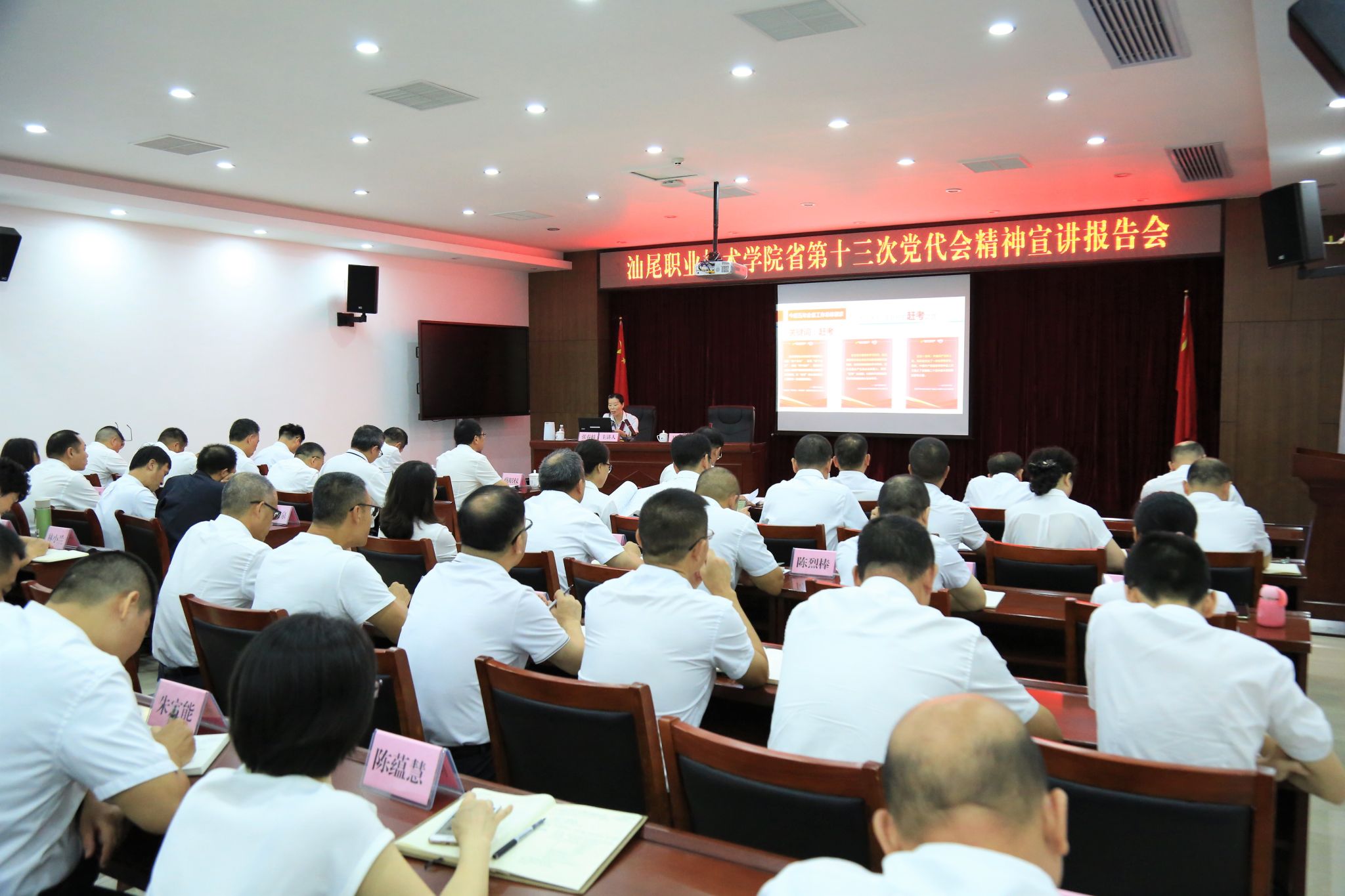 会议强调,省第十三次党代会是在广东进入全面建设社会主义现代化新征程、豪情满怀迎接党的二十大胜利召开的重要时刻召开的一次十分重要的会议,对广东当前和今后一个时期的发展具有重要意义。全体党员干部要以此次宣讲为契机,进一步学习贯彻落实习近平总书记关于教育的重要论述和省党代会精神。一是要提高政治站位,增强学习积极性,深刻领会省党代会精神,做省党代会精神的传播者、践行者。二是要精心组织部署,迅速掀起学习宣传贯彻热潮,推进省党代会精神进学校、进课堂、进宿舍、进师生头脑。三是要结合工作实际,以担当实干乘风破浪开新局,为建设省域高水平高职院校,加快把汕尾建设成为沿海经济带靓丽明珠,谱写海陆丰革命老区高等职业教育高质量发展新篇章作出更大贡献!