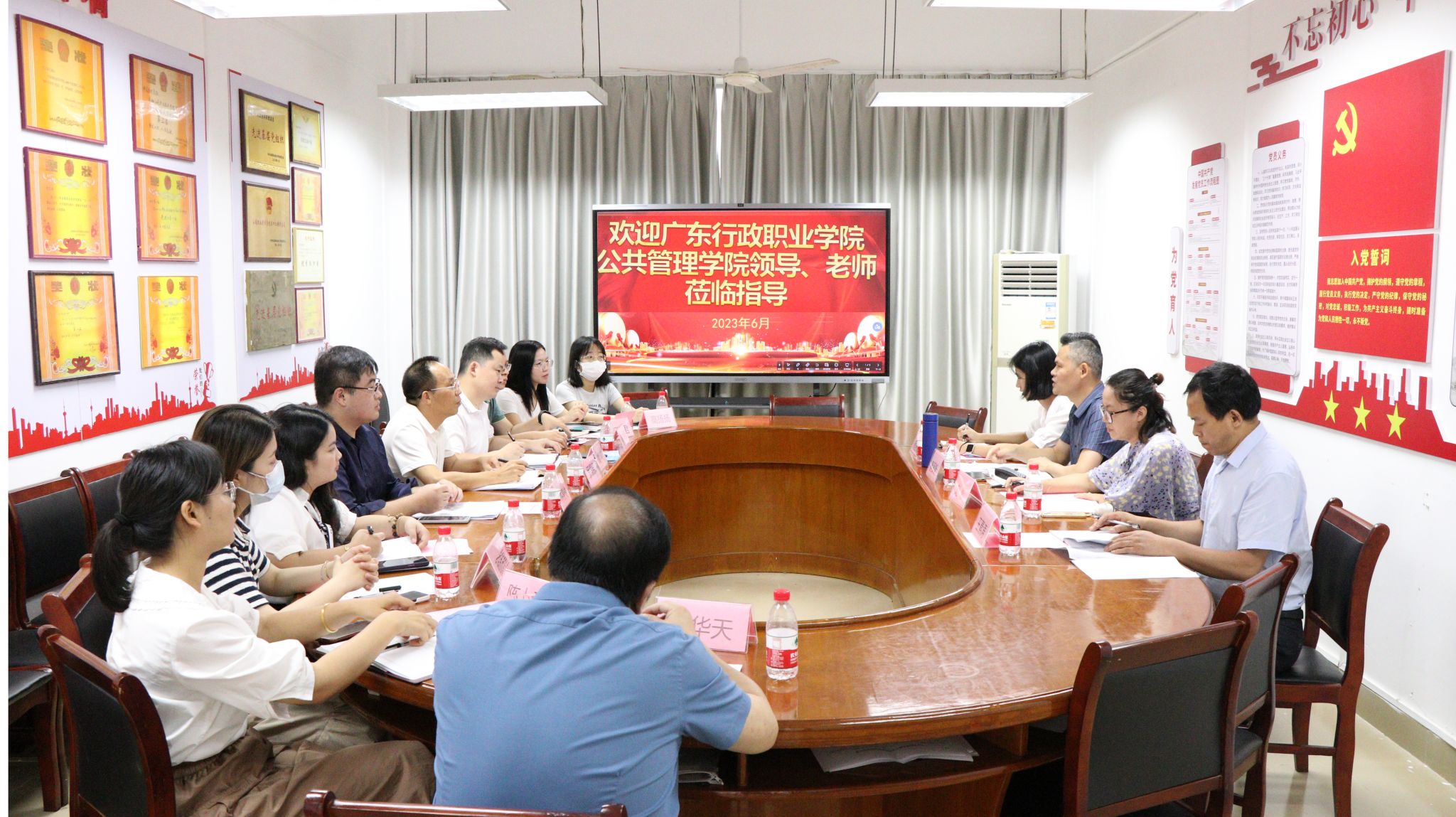 唐贤衡对我校的热情接待表示由衷地感谢,并对广东行政职业学院公共管理学院的办学历史、师资队伍、学科布局及未来发展目标做详细介绍。他表示,我校人文学院浓郁的人文气息,师生们朝气蓬勃的精神面貌,让他深受感染和触动。希望未来双方持续加强互访交流,积极创新人才培养举措,不断扩大学科影响力,助力两校的高质量发展建设。随后,相关人员介绍了广东行政职业学院行政管理专业的发展情况,围绕专业建设、校企合作、师资建设、实习实训、学生竞赛、现代学徒制深入地研讨和交流。
