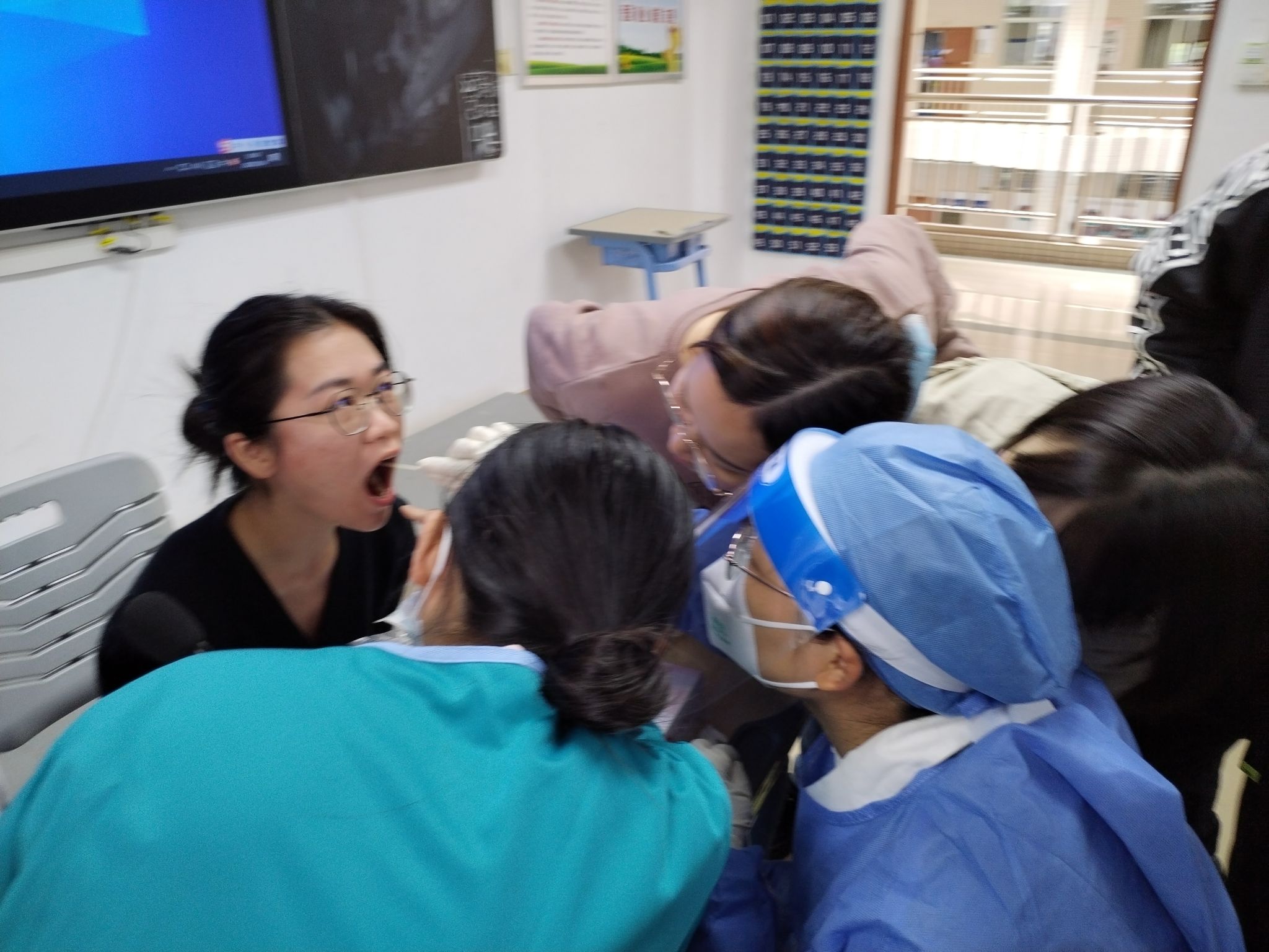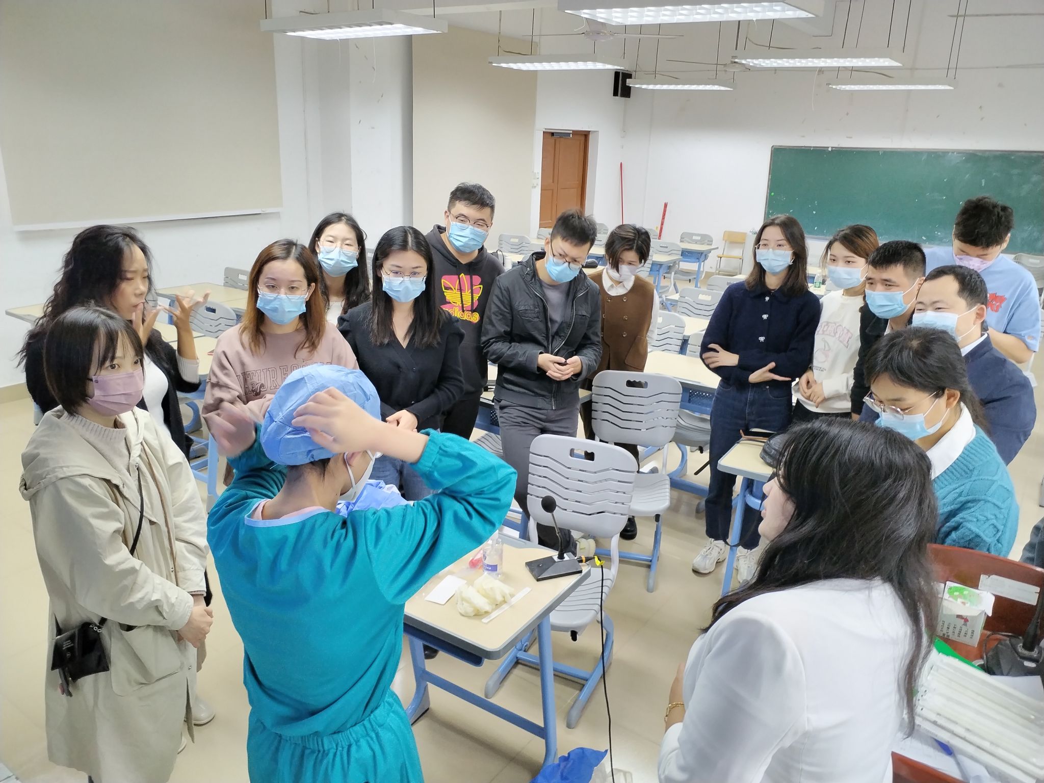 此次培训采取理论讲解、视频演示和现场模拟操作相结合的方式进行。深汕中心医院医护人员围绕核酸采样防护用品的使用规范、临床标本采集方法、医疗废物的处理方法、咽拭子采集流程与注意事项、样本的保存与送检流程等内容进行了详细讲解。授课结束后,我校核酸采样志愿者在医护人员的指导下,对于防护用品的戴脱和咽拭子采样全流程开展实操演练,并逐一参加现场考核。