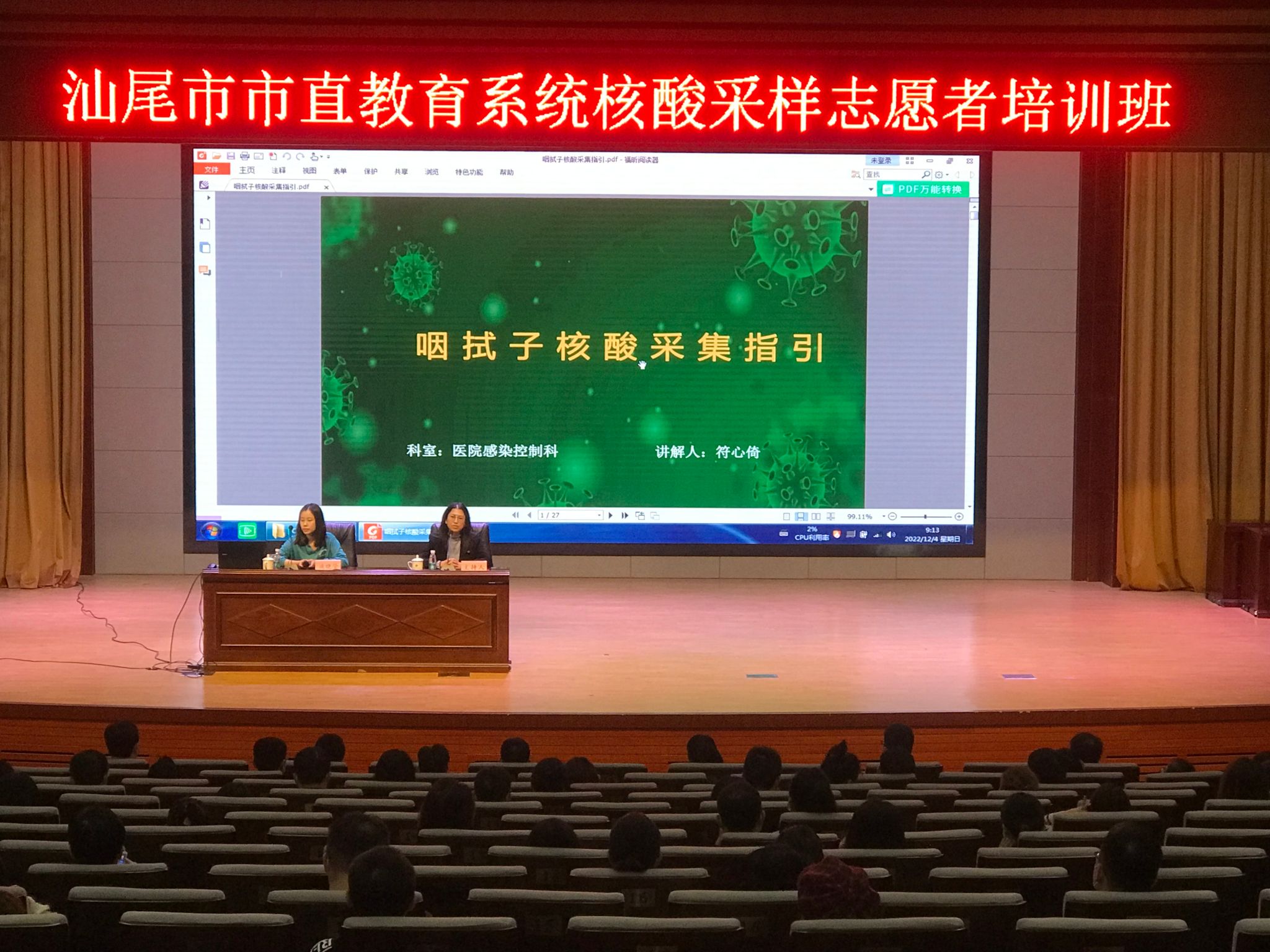 为进一步提高教育系统核酸采样志愿服务队伍核酸采样能力和实操技能水平,提高学校应急处置能力,12月4日,市直教育系统核酸采样志愿者培训班(第三期)在我校学术报告厅举办,我校行政、教学各部门共223人参加培训。