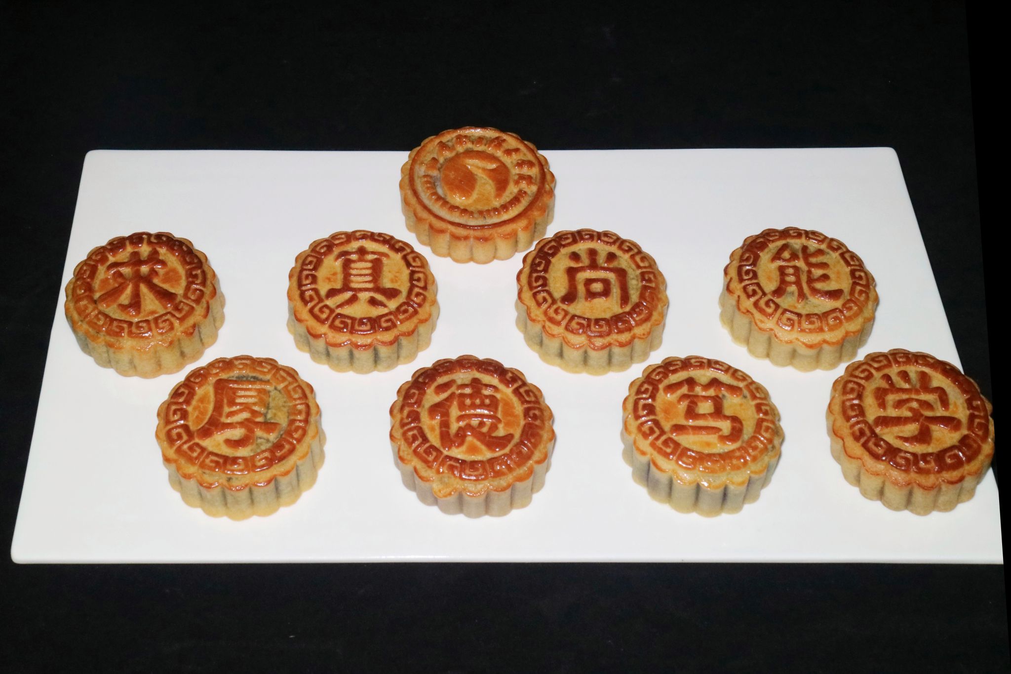 小巧玲珑的月饼上,嵌入学校校徽、校训等元素,彰显浓浓的必赢特色。