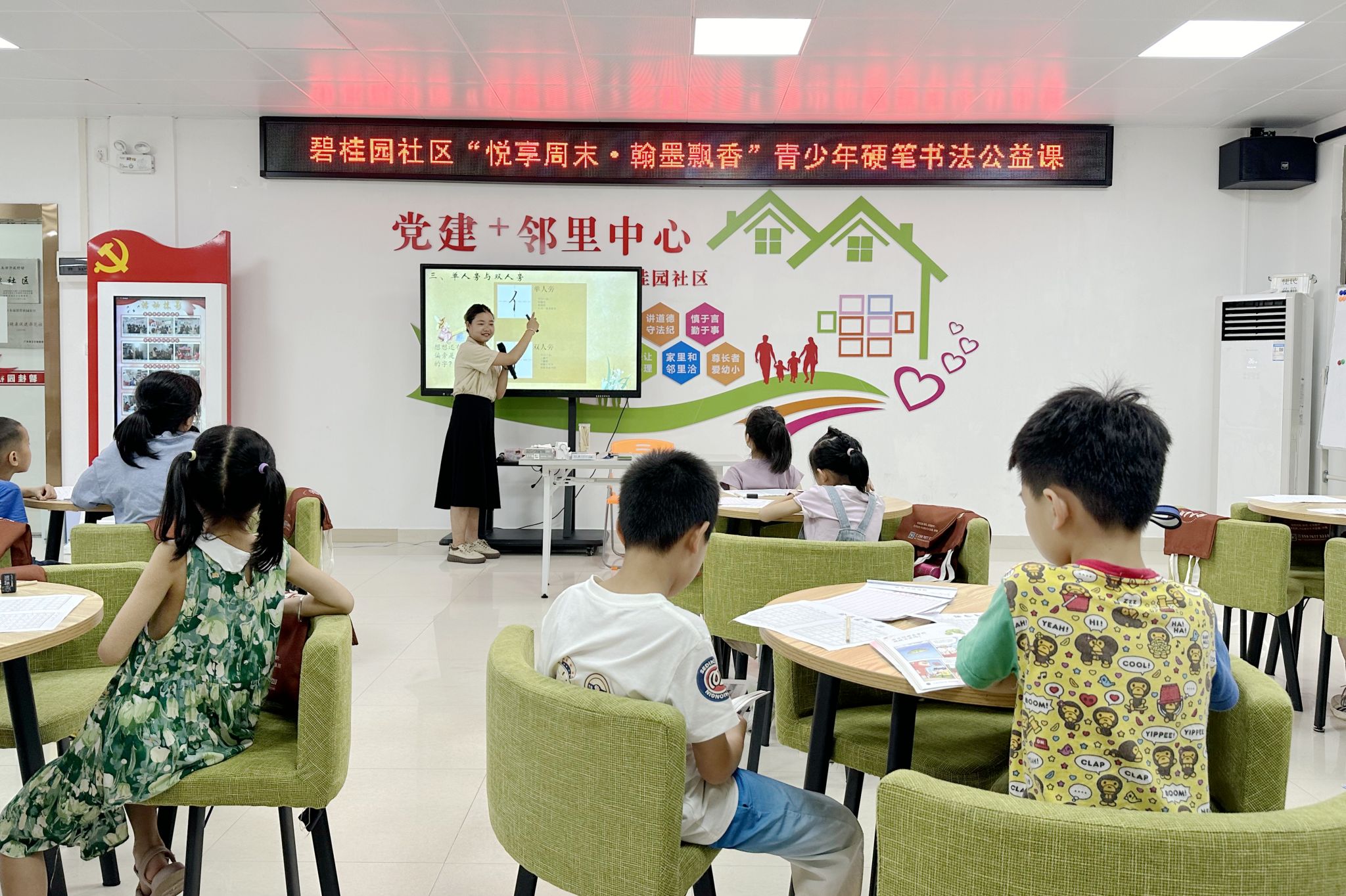 为服务地方新时代文明实践活动,丰富社区青少年文化生活,营造全民终身学习氛围,6月8日至23日,我校人文学院联合学校书法协会、汕尾尚艺书院,走进城区东涌镇碧桂园社区开展“悦享周末,翰墨飘香”青少年书法公益课培训活动。